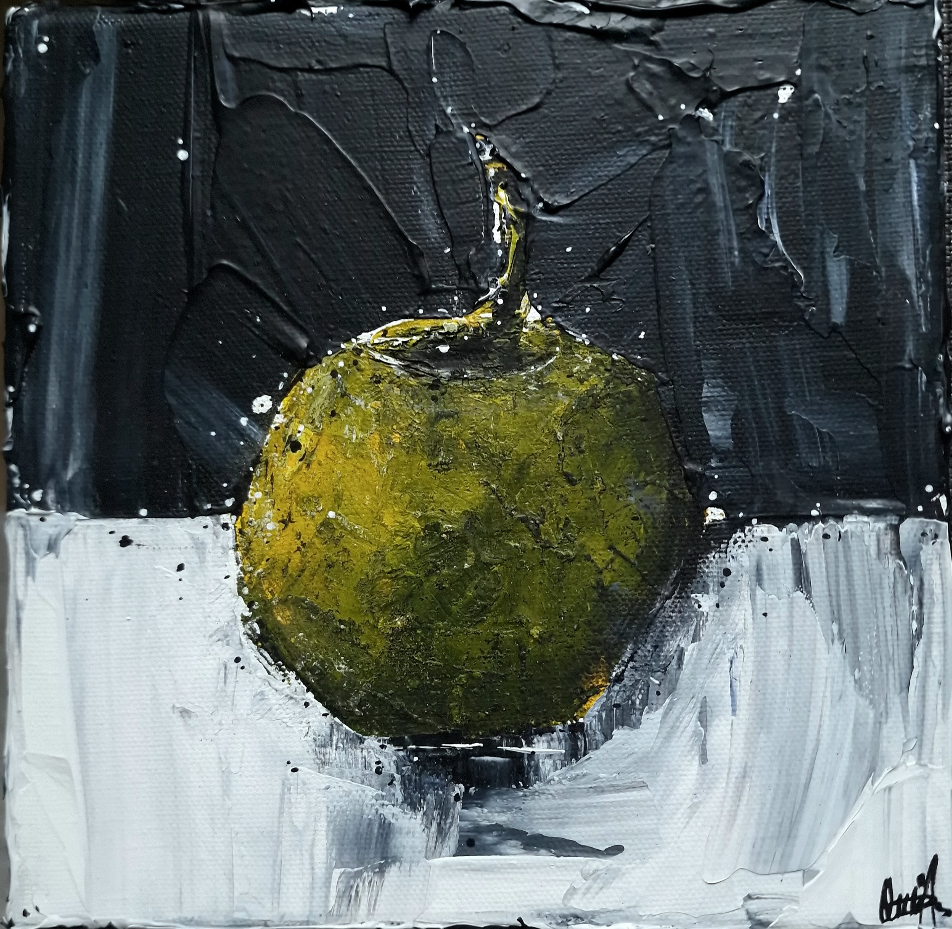 LEMON 20x20x4cm. Small painting with a rough surface in a thick wedge frame. DM if interested❣️