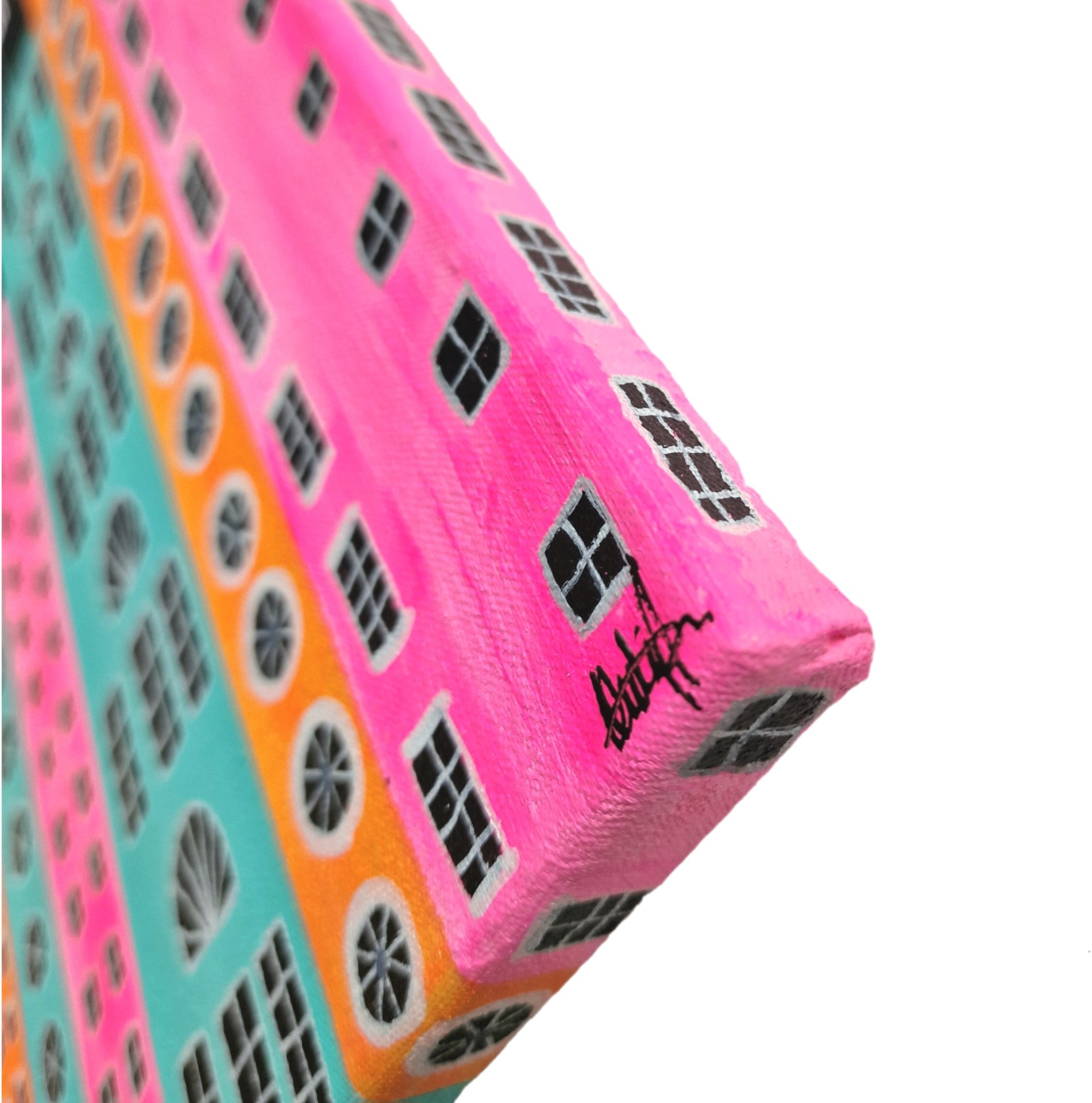 PIENI VAALEANPUNAINEN KAUPUNKIMAALAUS 20X20XCM.